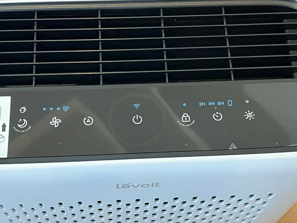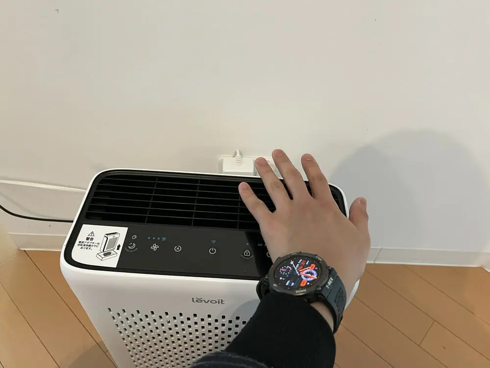 次に上部中央にある電源ボタンを触れるだけで、空気清浄器が作動し始める。