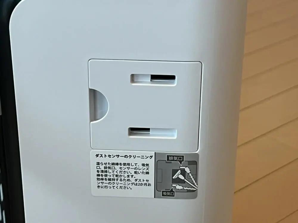▼右側面には、空気中のホコリを検知するための「AirSight赤外線ダストセンサー」が内蔵されている。