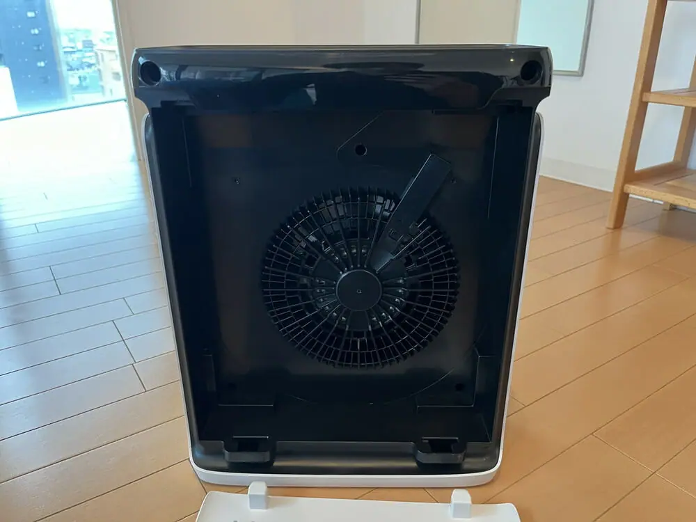 正面の吸気口から空気が吸い込まれ、上部から清潔な空気が放出される。