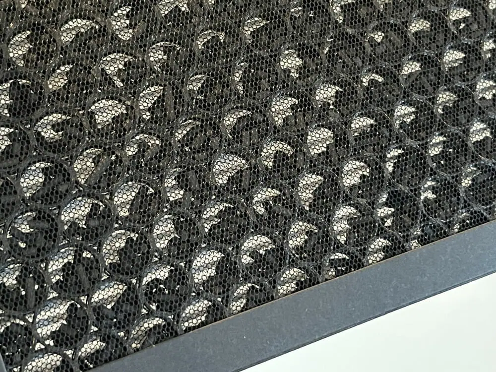 ▼裏面には、活性炭がたくさん詰まった穴が見られる。