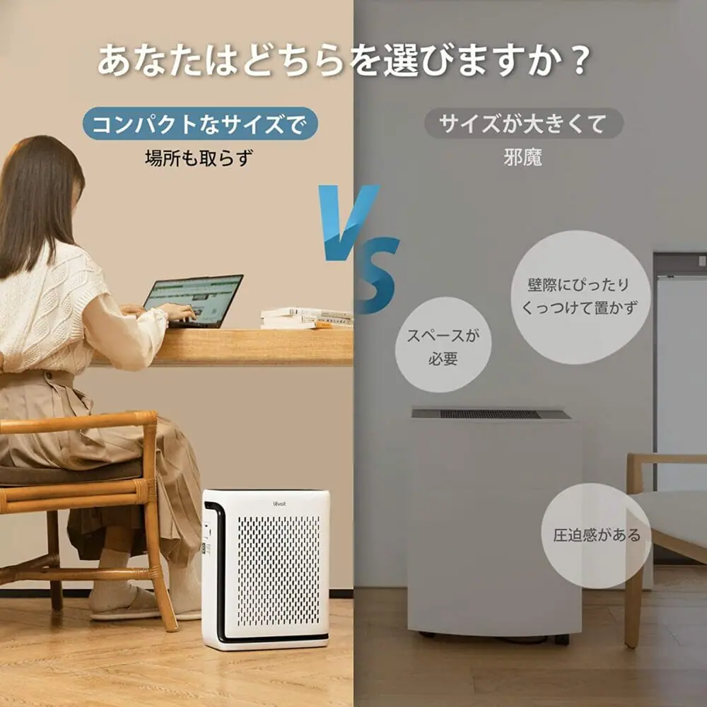 このように、コンパクトでスペースを占めないサイズでありながら、多機能で高性能な空気清浄機である。