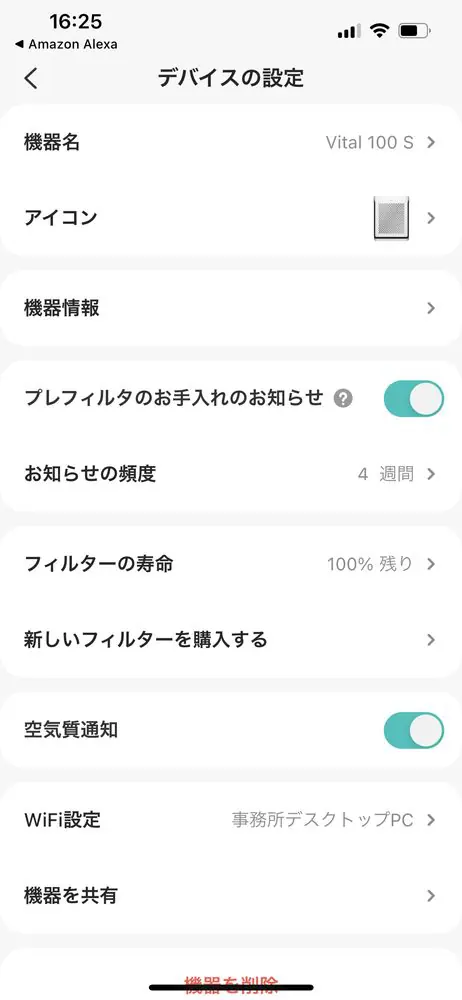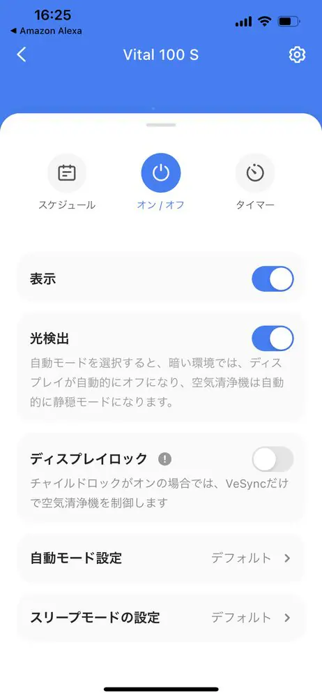 ▼アレクサに対し "アレクサ、Levoit Vital 100Sを起動して" のように声をかけることで、空気清浄機を遠隔で操作可能。