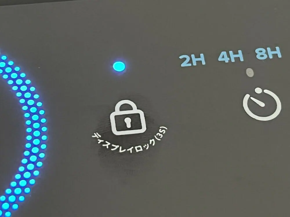▼「ディスプレイロック機能」(チャイルドロック)。ボタンを3秒以上長押しすることで、誤操作防止機能をオン/オフできる。