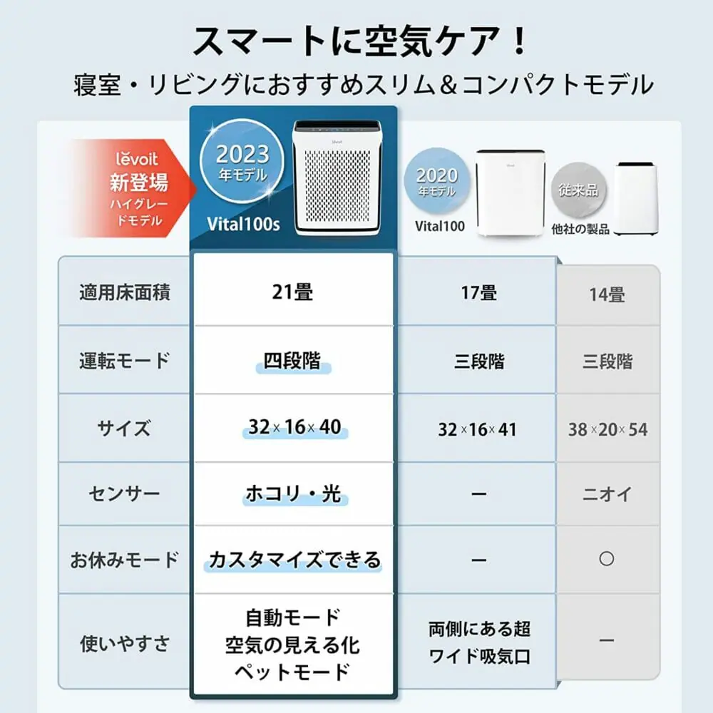 今回紹介した『Levoit Vital 100S』について、特長をまとめると以下の通りだ。
