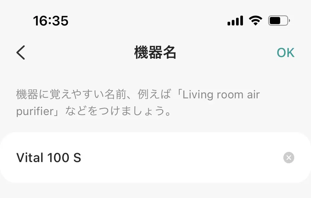 アプリをインストールした後、メイン画面で「Levoit Vital 100S」を選択する。