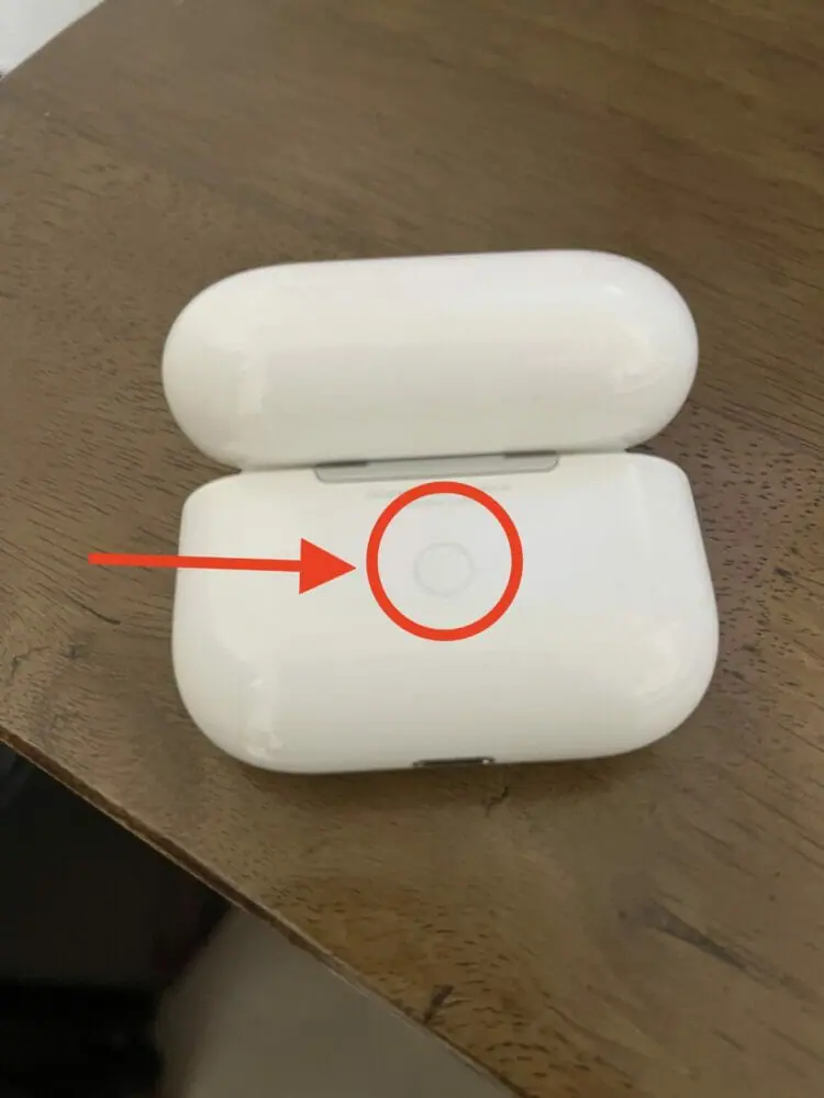 ケースの蓋を開けながら、背面のセットアップボタン(丸印)を長押しします。
