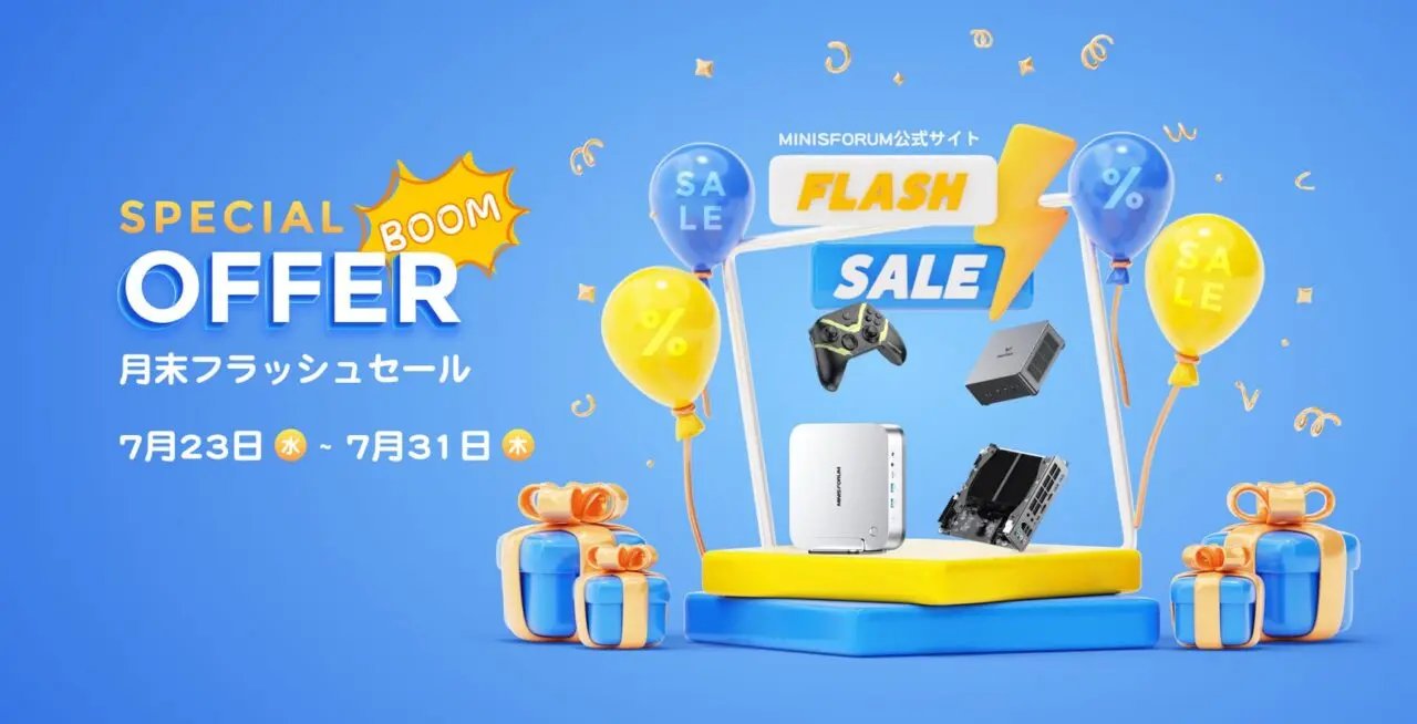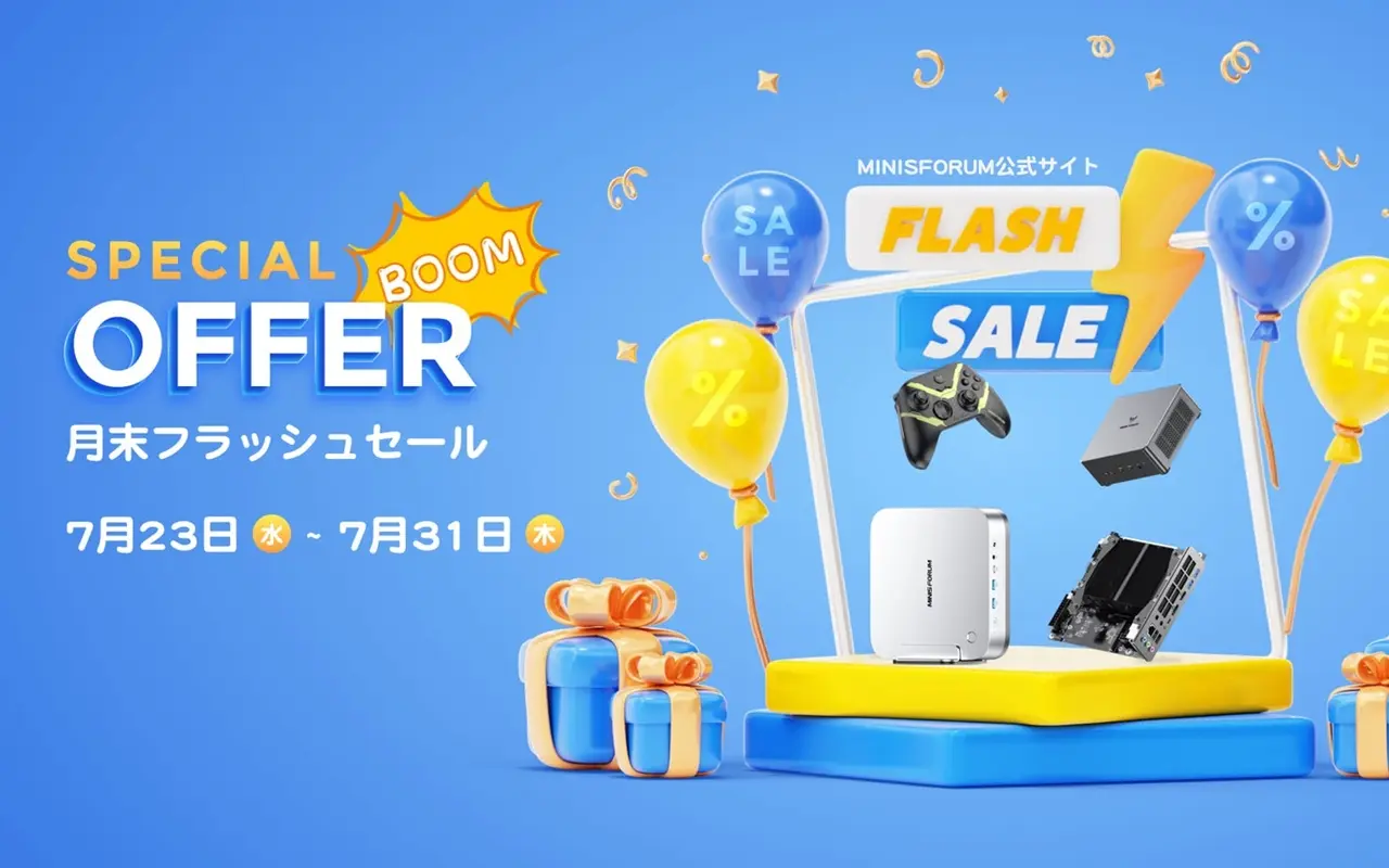 - セール会場:https://www.minisforum.jp/pages/2025-flash-sale