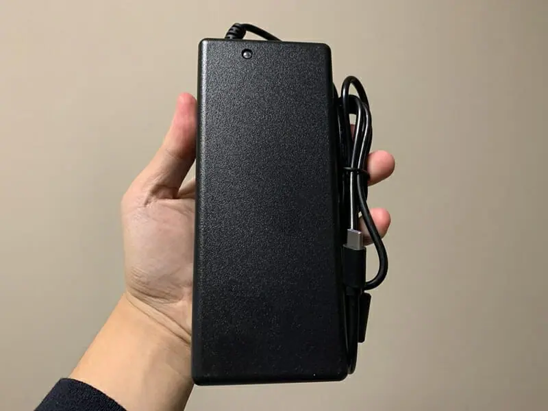 一方で、せっかく持ち運びや省スペース化に適したサイズであるにもかかわらず、電源アダプタのサイズが大きすぎる点は残念だ。本製品はバッテリー内蔵型ではないため、外出先で利用する場合はこのデカいアダプタまで持参する必要がある。