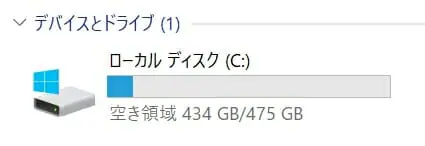 ▼512GBモデルでは、初期状態で約475GB分が利用可能領域として用意されている。
