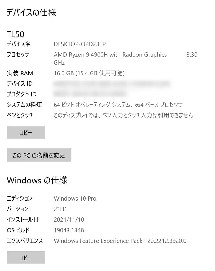 Ryzen 9 5900HXは "Zen 2" アーキテクチャを使用したプロセッサーであり、8コアと16スレッドを実現。標準クロック速度は3.3GHz、最大ブーストクロックが4.4GHzに達するなど、パワフルな性能を発揮する。