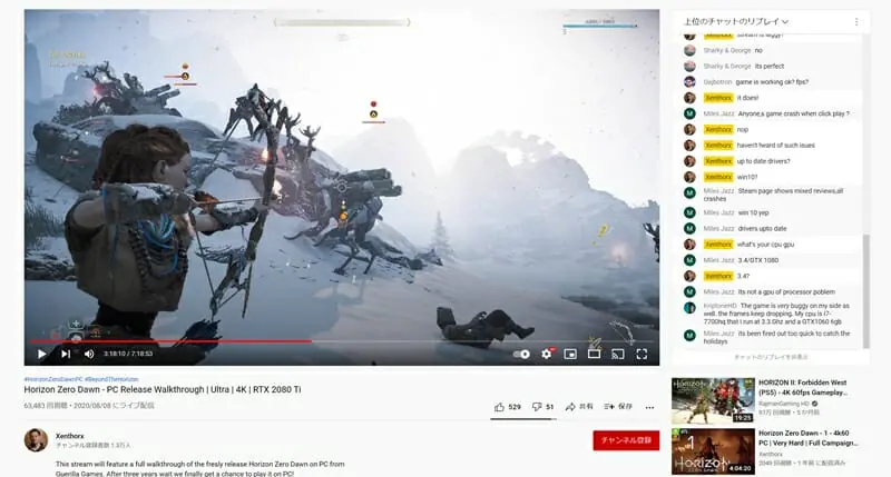 また、YouTubeやネットフリックスといったサイトにおいて動画を視聴してみた。