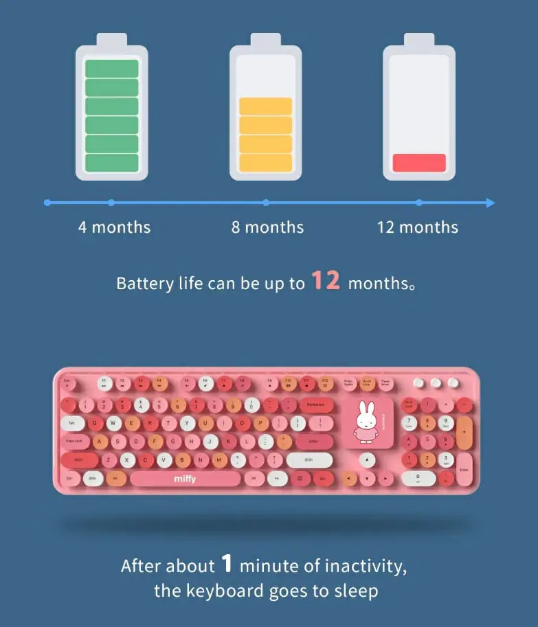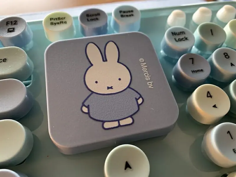 ミッフィーとの正式コラボ製品であり、キーボード自体や付属のマウスパッドなどにミッフィーのイラストがプリントされている。