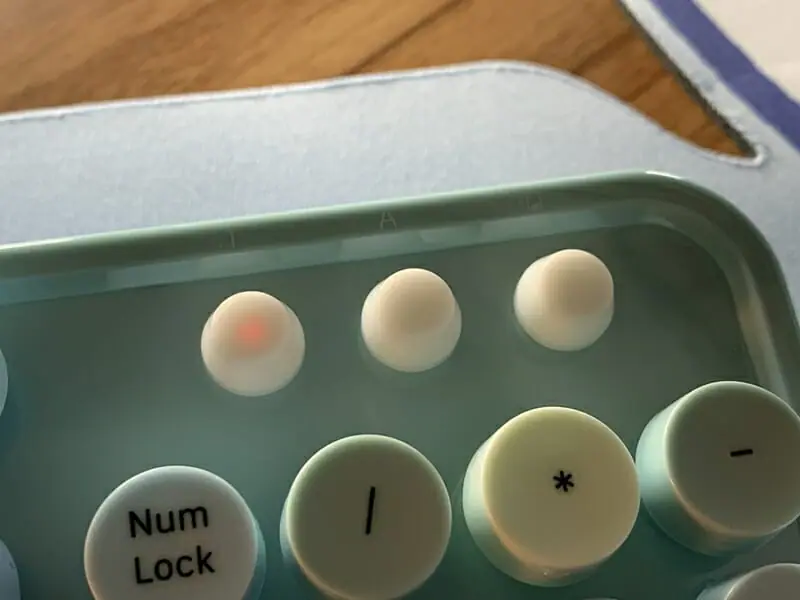 ▼右上のLEDライトは、"Num Lock" や "Caps Lock" の状態を点灯で表示するインジケータの役割がある。
