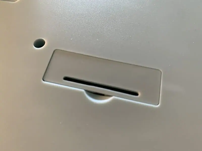▼キーボードとマウスをBluetooth接続するためのドングルが収納されている。