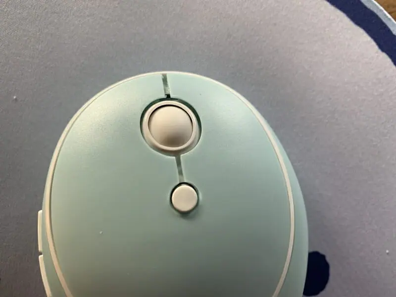 ▼上部にはスクロールホイールと、押すたびにマウスポインタの速度を調節できるDPIボタンが搭載。