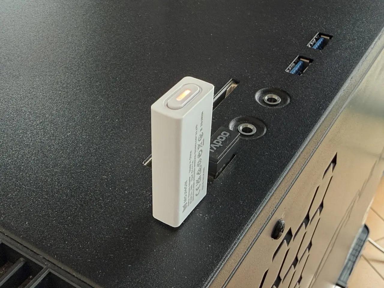 2.4G無線接続を行う場合は、付属の無線ドングルをデバイス側へ接続する。