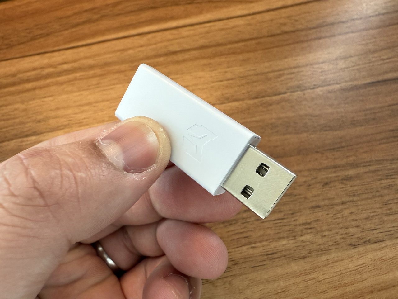 2.4G無線接続を行う場合は、付属の無線ドングルをデバイス側へ接続する。