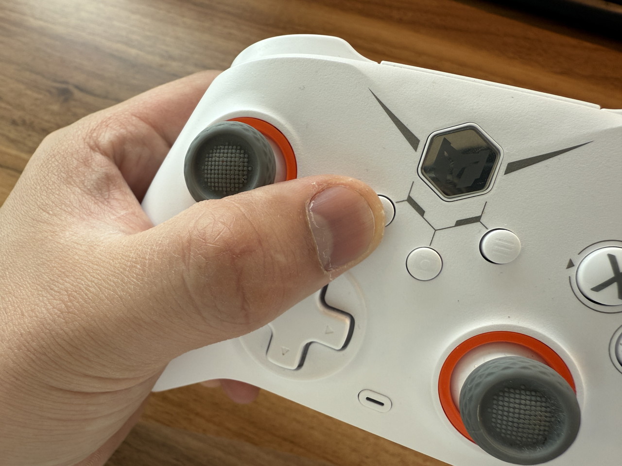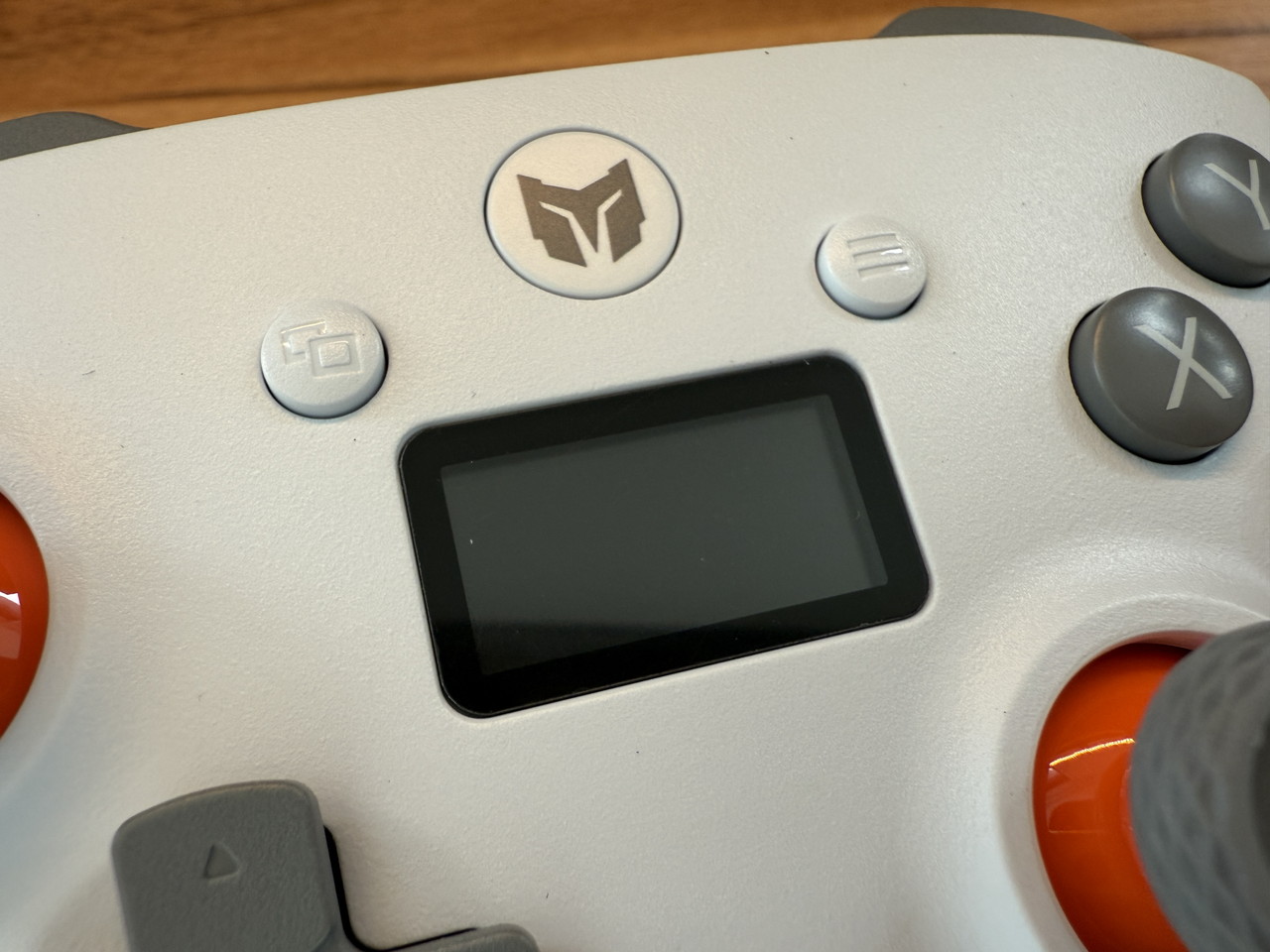 コントローラーの前面中央にはLCDディスプレイが用意されており、背面ボタンへの割り当て、ジョイスティックの感度曲線やデッドゾーン(0デッドゾーンおよびマイナスデッドゾーンを含む)の調整を行ったり、振動レベルやジョイスティック、トリガーの補正機能などをコントローラー上で完結できる。