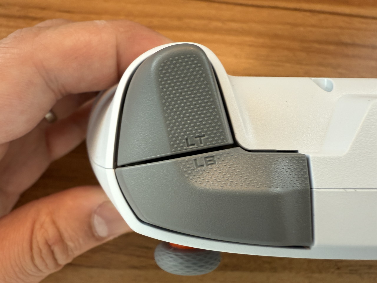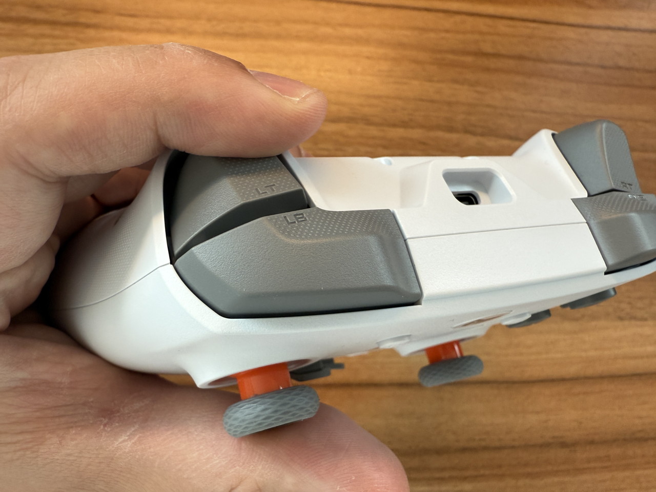 RB/RT・LB/LTボタンの操作性も素晴らしい。RB/LBボタンは指の形状に合わせて横長に、RT/LTボタンは押す面積が広く、ミスタッチを起こしづらいよう設計されている。