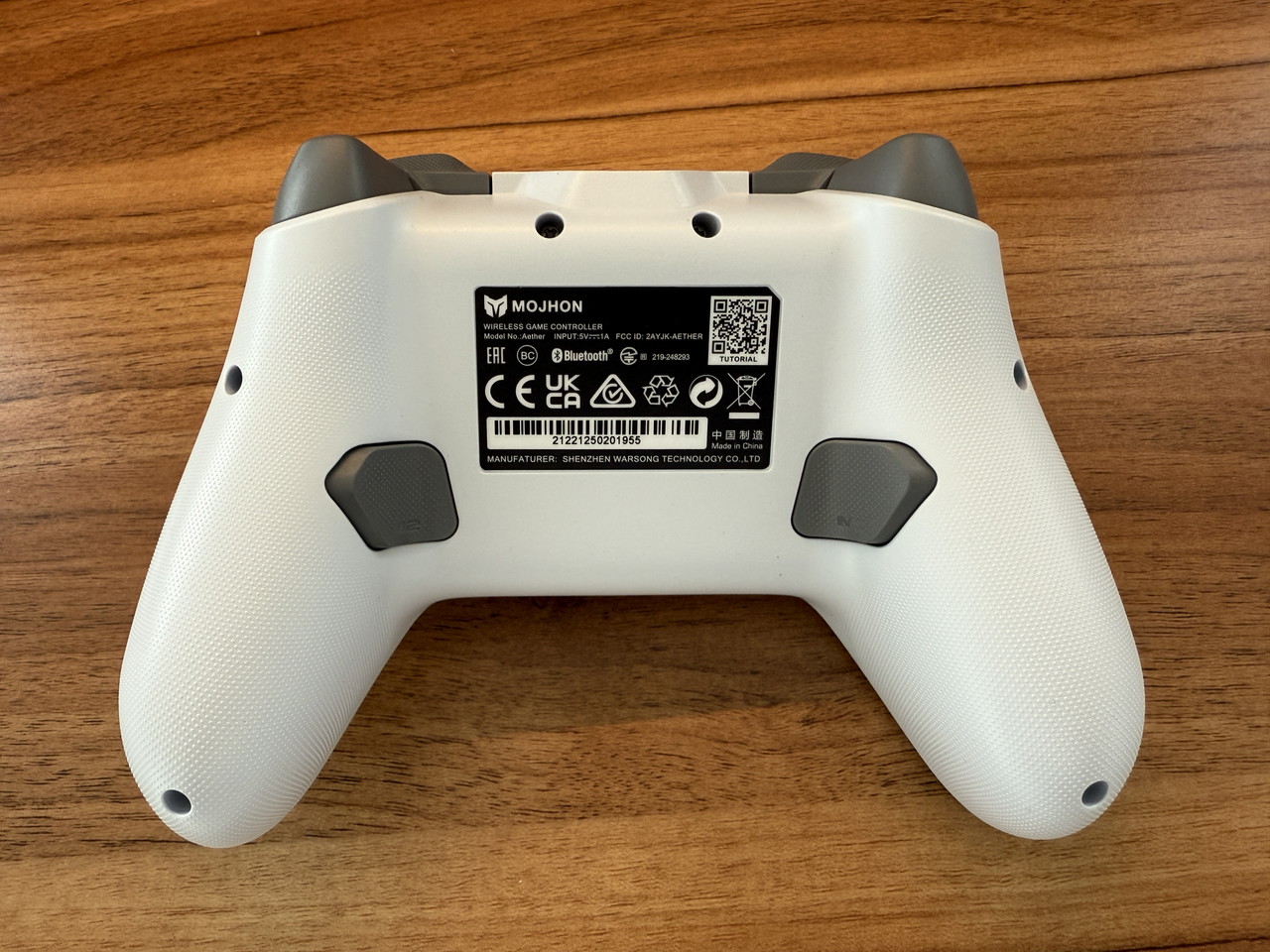背面には2つの大きな背面ボタンが用意されており、好みのボタン機能を割り当てることが可能(マクロ機能には非対応)。