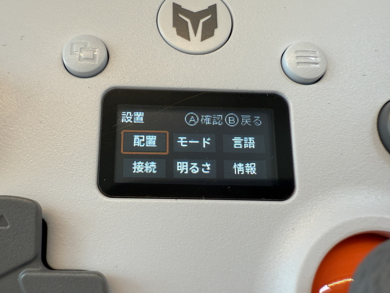 ▼なお、メニュー画面の「モード」から、接続先を XINPUT(PC) と SWITCH(ニンテンドースイッチ) のいずれかに切り替えることができる。