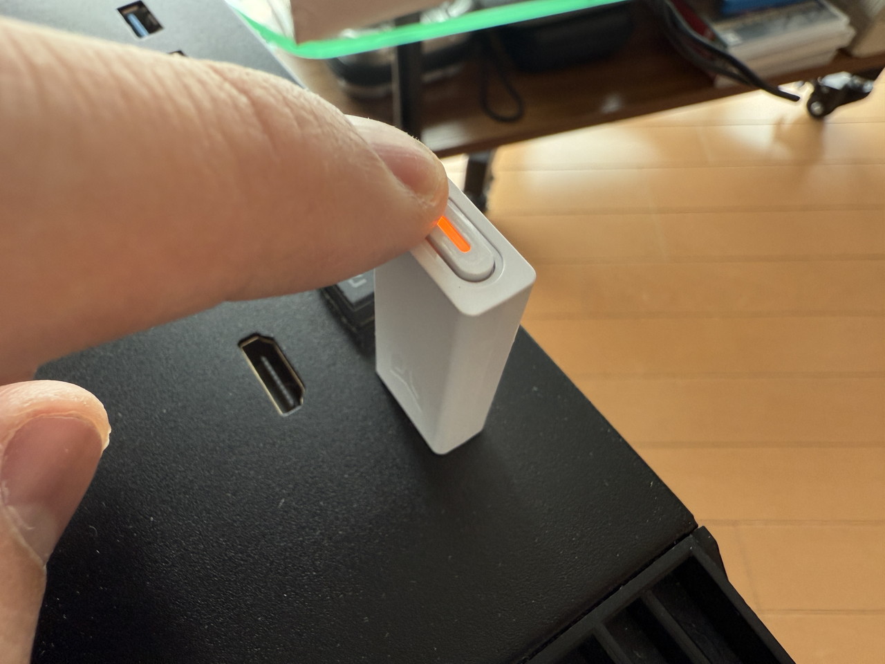 自動的に接続されない場合は、ドングル上部のペアリングボタンを長押しした後、Bluetooth接続の場合と同様、コントローラー上部のペアリングボタンを長押しすることで、2.4G無線接続が完了する。
