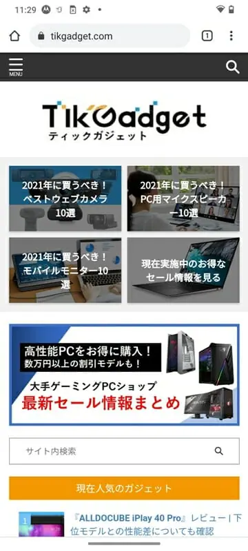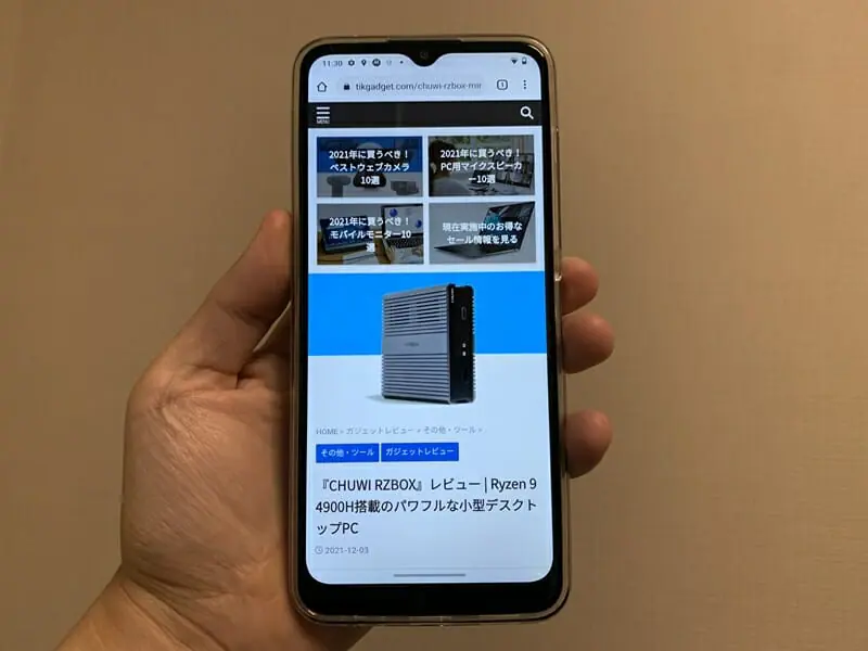 ページスクロール時にもカクつきを感じることは無く、いたって快適なウェブブラウジングを楽しむことが出来た。