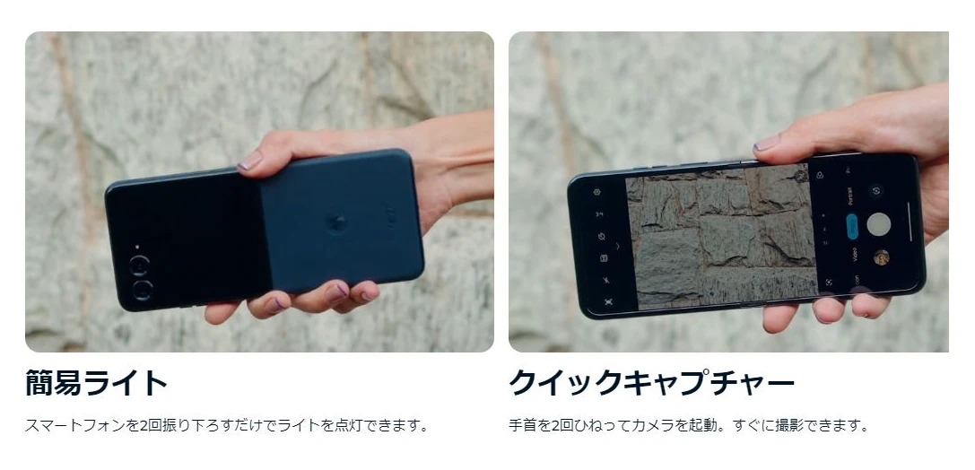 ▼手首を2回ひねってカメラを即起動できる「クイックキャプチャー」機能をサポート。