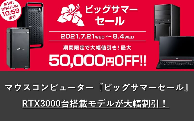 RTX3000台搭載モデルが大幅割引!マウスコンピューターにて『ビッグサマーセール』開催