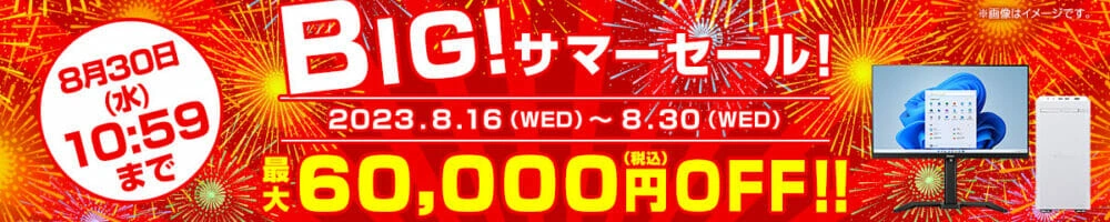 同サイトにおいて、RTX4000&3000台のハイエンドグラボを搭載したゲーミングPC等について、最大60,000円(税込)オフの割引が適用された超特価で購入できる、期間限定セール『BIG!サマーセール!』が開催されます!