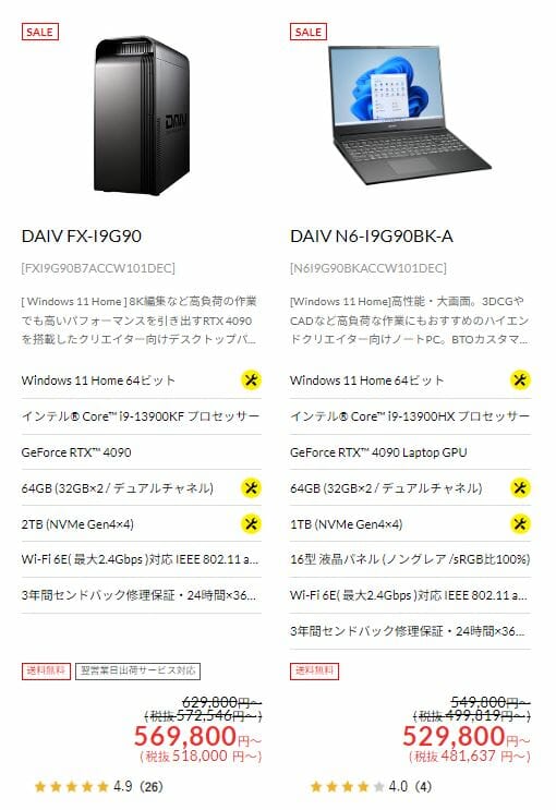 ▼RTX4090を搭載した高性能PCには60,000円OFFもの割引が適用されています!