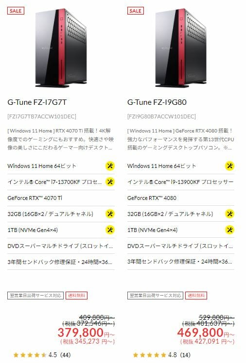 超ハイスペックゲーミングPCから、ミドル級のゲーミングPC、そしてノート型からリモートワークに適した格安なビジネスモデルまで、幅広い製品がラインナップに並んでいます。