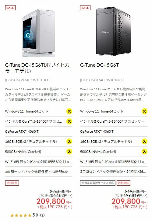 オススメ③:G-Tune DG-I5G6T(ホワイトカラーモデル)