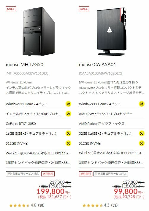 ▼RTX3050搭載のエントリーモデルも、さらにお得な価格で購入可能。