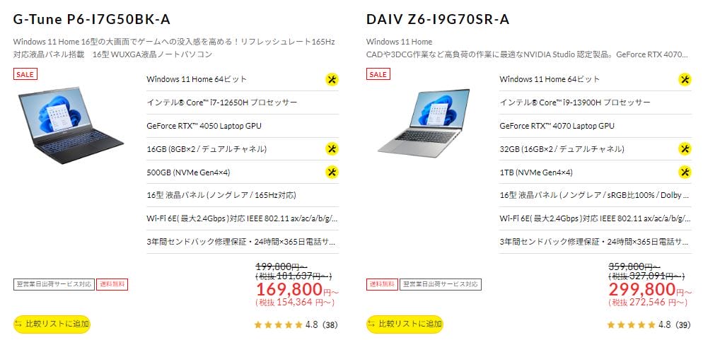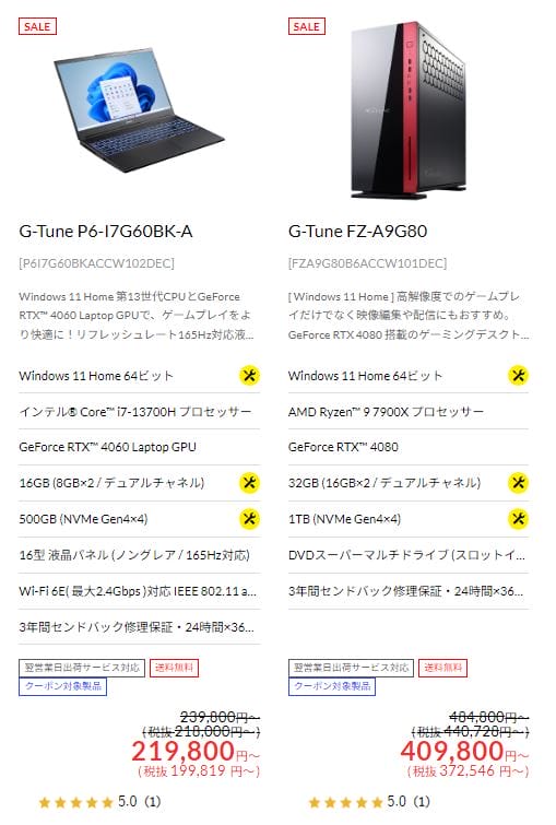 そしてデスクトップモデルだけでなく、ゲーミングノートPCも非常にお得な価格で用意されています。