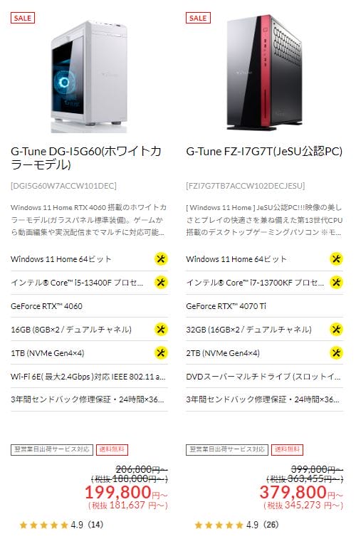 ▼『RTX 4070Ti』搭載のミドルハイ級モデルもさらにお得な価格に!
