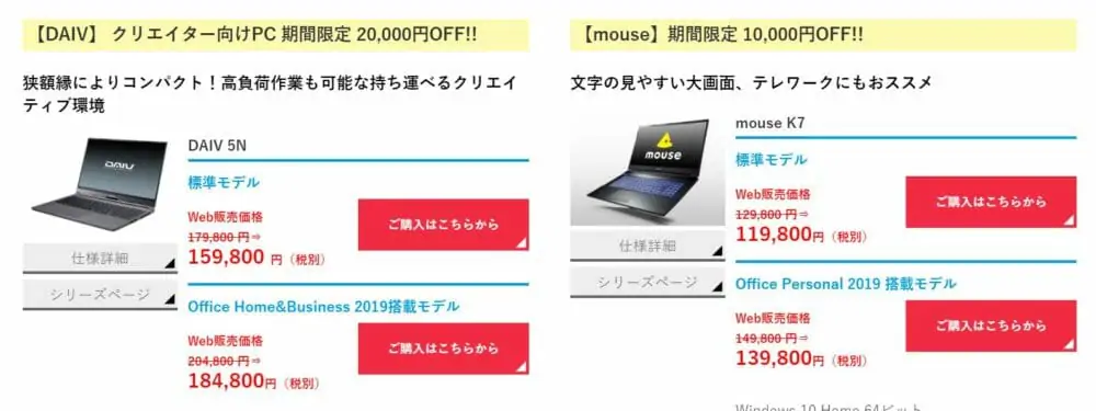 | mouse B5-i7 | 89,800 円 | 79,800 円(10,000円OFF) |