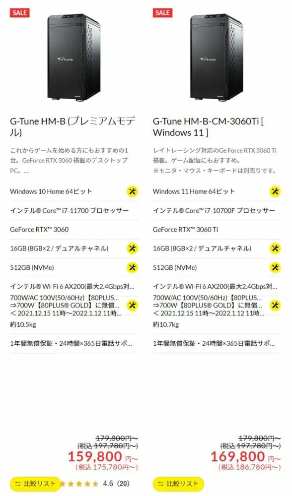 『マウスコンピューター 新春セール2022』対象商品について