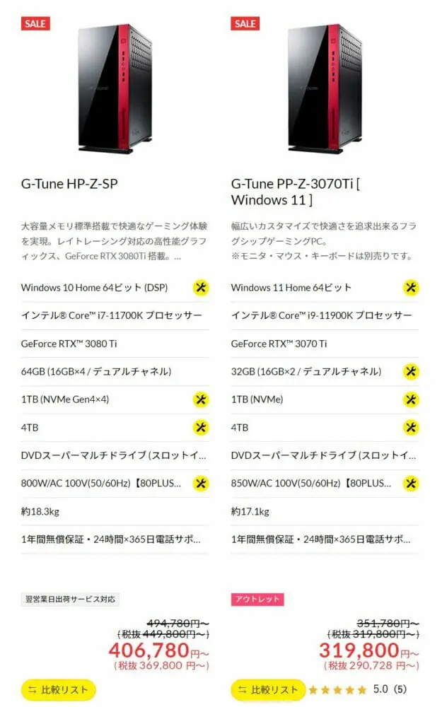 特に『RTX3080Ti』搭載モデルに関しては、税込88,000円もの割引が適用される、非常にお得なセールとなっています。