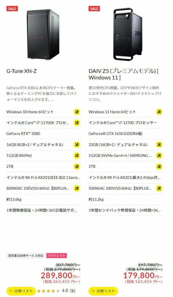超ハイスペックゲーミングPCから、ミドル級のゲーミングPC、そしてノート型からリモートワークに適した格安なビジネスモデルまで、幅広い製品がラインナップに並んでいます。