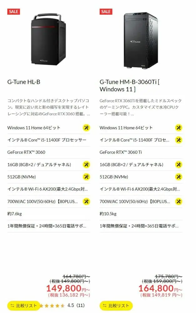 オススメ③:G-Tune HL-B-3060Ti(プレミアムモデル)