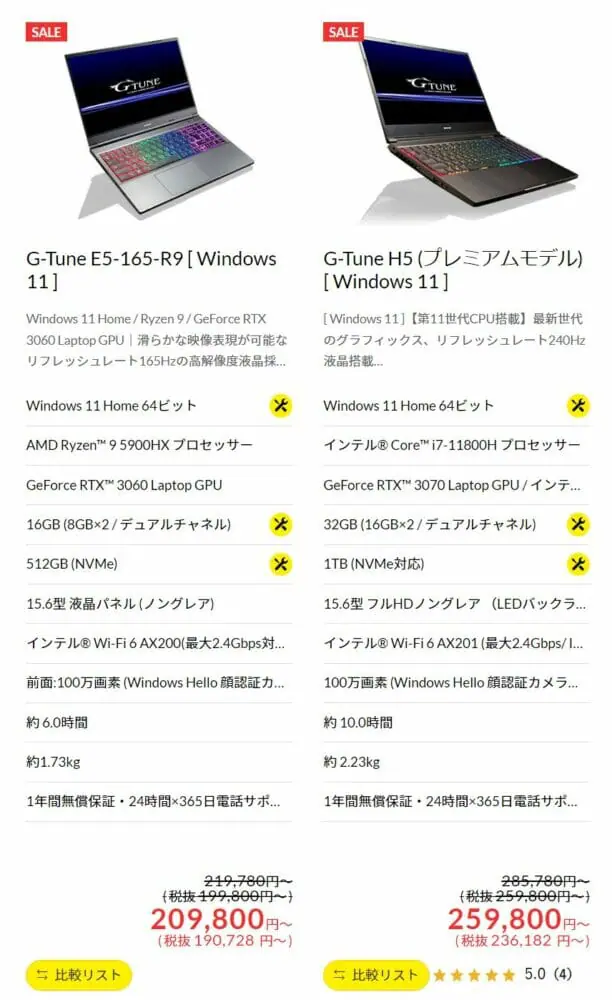 また場所を選ばずに本格的なゲーミングを楽しめるノート型のゲーミングPCもセール対象となっています。