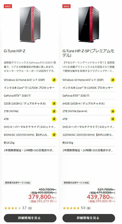 特に『RTX3080Ti』搭載モデルに関しては、税込88,000円もの割引が適用される、非常にお得なセールとなっています。