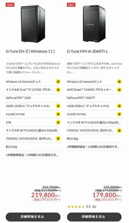 ▼『RTX3060Ti』や『RTX3060』を搭載したリーズナブルなエントリーモデルも、さらにお得なセール価格で販売されています。