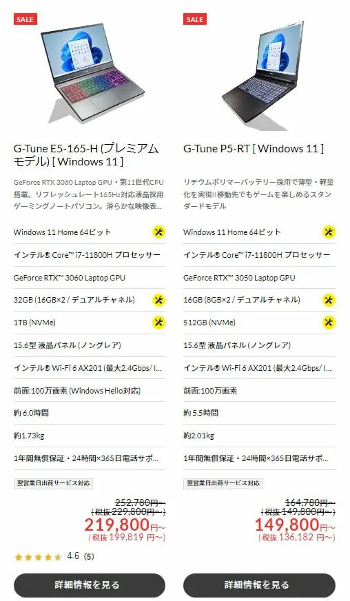 また場所を選ばずに本格的なゲーミングを楽しめるノート型のゲーミングPCもセール対象となっています。