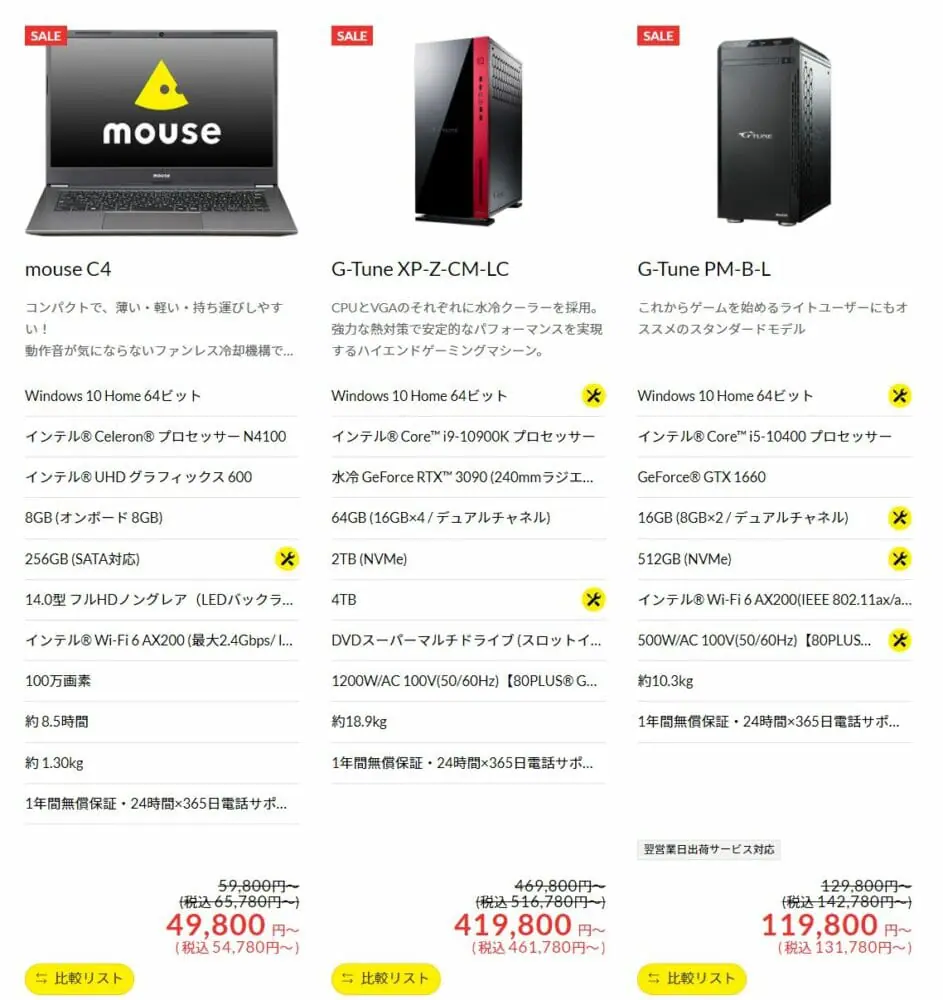 今回のセールでは、マウスコンピューターにおける人気モデルを、期間限定の超お得な価格で購入することが出来ます。