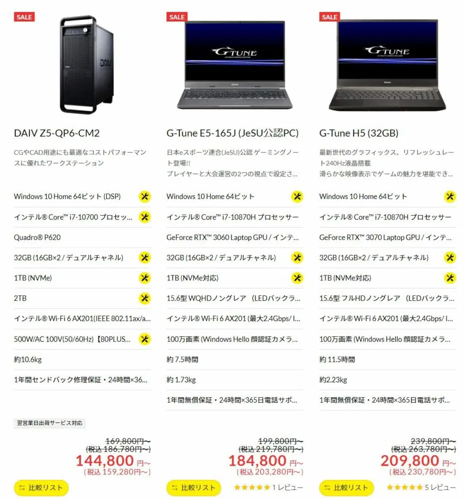 本セールを利用することで、RTX3090搭載モデルを始めとした多くのPCを、お得な割引価格で購入することが出来ます。