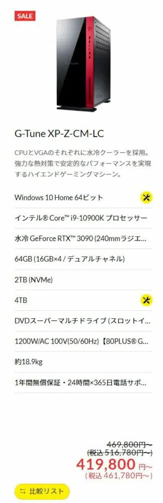 ▼RTX3090搭載の最上級ハイエンドゲーミングPCが5万円OFFの価格で販売。