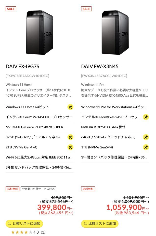 ▼RTX4070 SUPER搭載モデルもお得な価格で販売中!