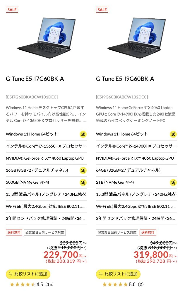▼RTX 4060搭載のエントリーモデルもお得な価格で用意。